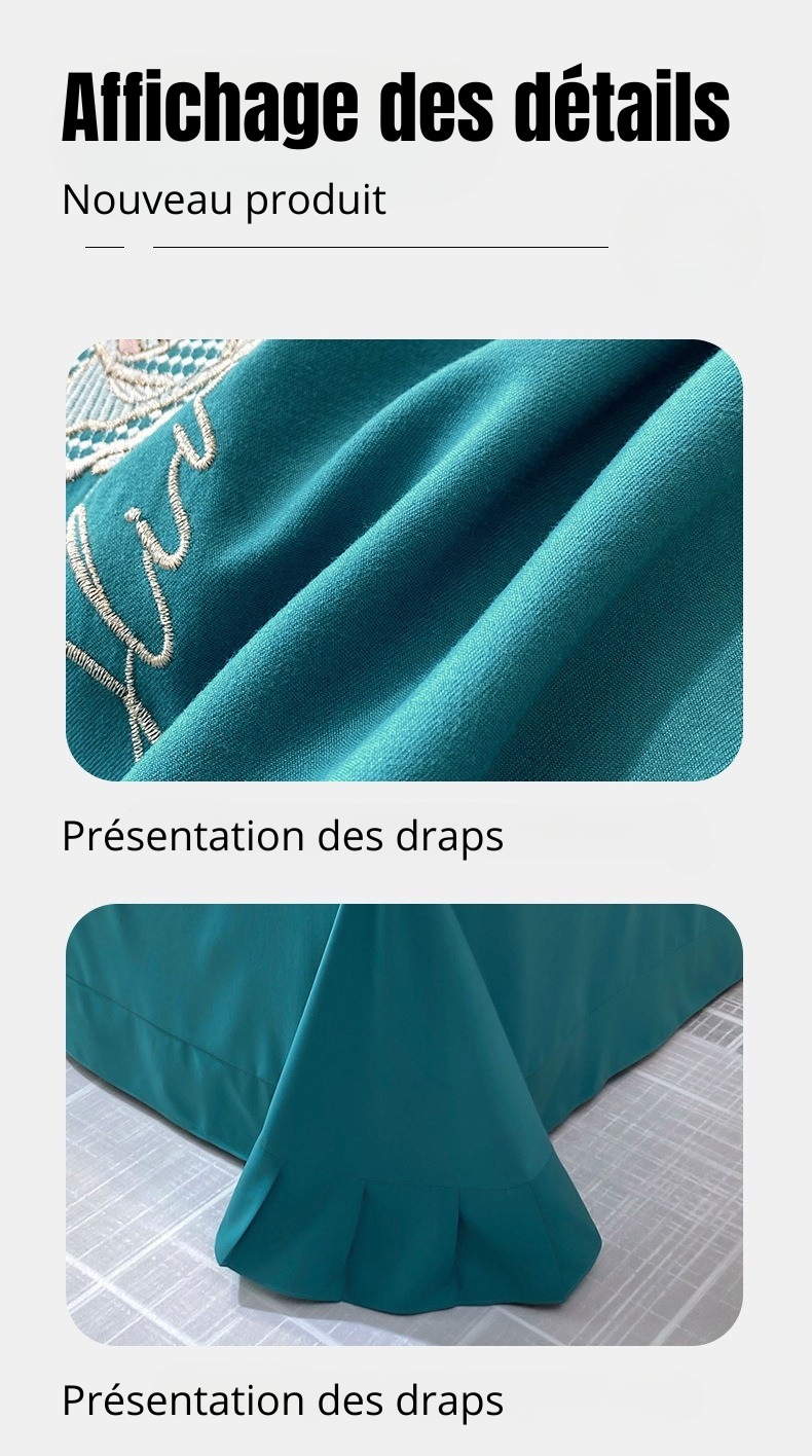 Inclus : housse de couette, drap plat, 2 taies d’oreiller.